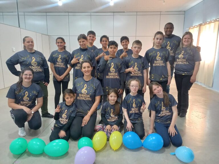 A Secretaria Municipal de Educação fez a entrega de camisetas para os integrantes da Banda Municipal e do grupo de Balizas. A iniciativa visa fortalecer a identidade visual, valorizar os participantes e apoiar as apresentações culturais que representam o município em eventos locais e regionais.