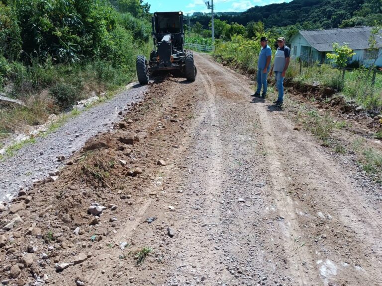 O prefeito Luiz Francisco Fagundes, e o supervisor de Obras, Marcone Jonei Machado, que respondem pela secretaria de Obras estiveram acompanhando os trabalhos, na tarde dessa terça-feira (30). Segundo eles, o trabalho de alargamento das estradas visa à melhoria no tráfego, permitindo maior visibilidade e segurança para os motoristas. Fagundes ressalta que também sendo aplicado material nas proximidades da residência da família Lazzari, em Linha Melchior, a fim de melhorar o escoamento da água.