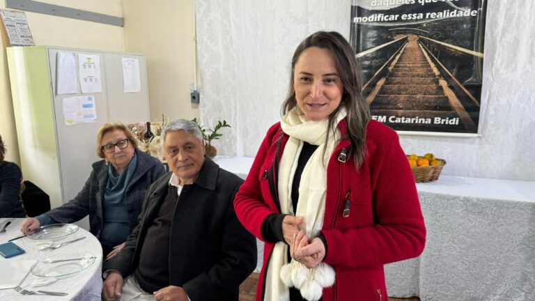 A secretária estadual da Educação, Raquel Teixeira, participa neste momento de uma reunião/almoço na Escola Estadual Catarina Bridi, em Ibarama. Na pauta, uma definição para as obras do futuro ginásio de esportes da escola Catarina Bridi. A expectativa é que haja o anúncio de uma nova empresa que deverá fazer o projeto e a execução dos trabalhos.