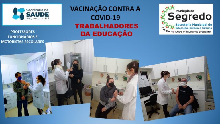 A Secretaria Municipal de Saúde de Segredo, em parceria com a Secretaria Municipal de Educação, iniciou a aplicação da 1ª dose da vacina contra a Covid-19 nos trabalhadores da Educação das redes municipal e estadual de ensino. Também estão sendo imunizados os motoristas escolares e funcionários de escolas. De acordo com a secretária da Saúde, Ana Feron, o dia D da imunização para esse público ocorreu na última sexta-feira, dia 28 de maio, e segue até esta terça-feira, 1º de junho para aqueles que, por algum motivo ou outro, não puderam receber a vacina na sexta feira.