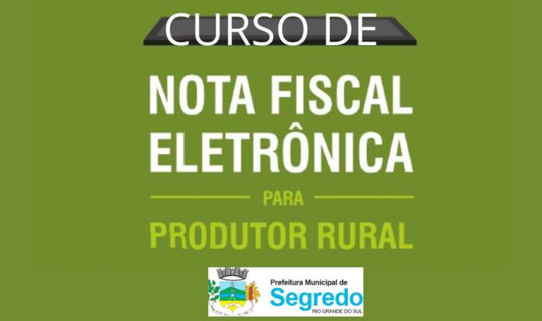 A Secretaria Municipal da Agricultura e Meio Ambiente de Segredo, em parceria com o SENAR, abriu inscrições para o Curso de Nota Fiscal do Produtor Rural. O curso abordará orientações sobre a emissão de notas fiscais eletrônicas, que passarão a ser obrigatórias a partir de janeiro.