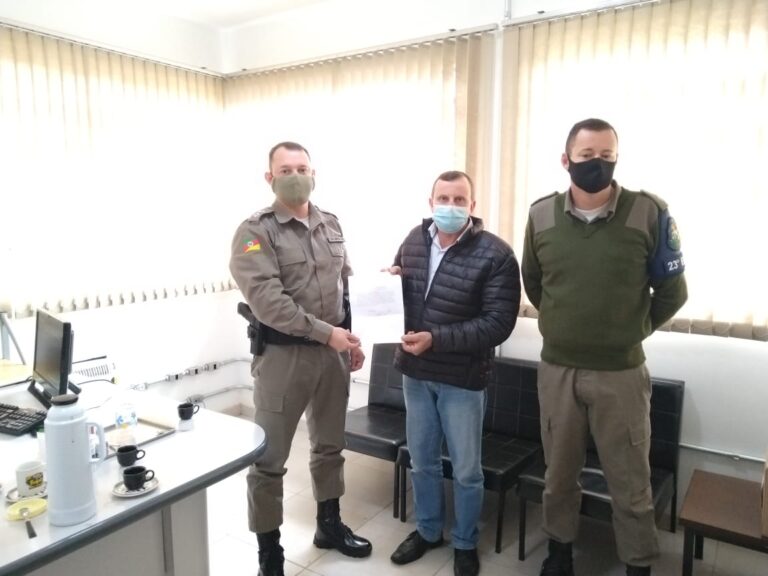 O sindicalista entregou uma carta de agradecimento pelos serviços prestados pela Brigada Militar, enfatizando a importância do trabalho ostensivo e preventivo, desenvolvido pelas guarnições na cidade, e principalmente, nas diversas propriedades rurais, através das Patrulhas Comunitárias do Interior (PCI’s).