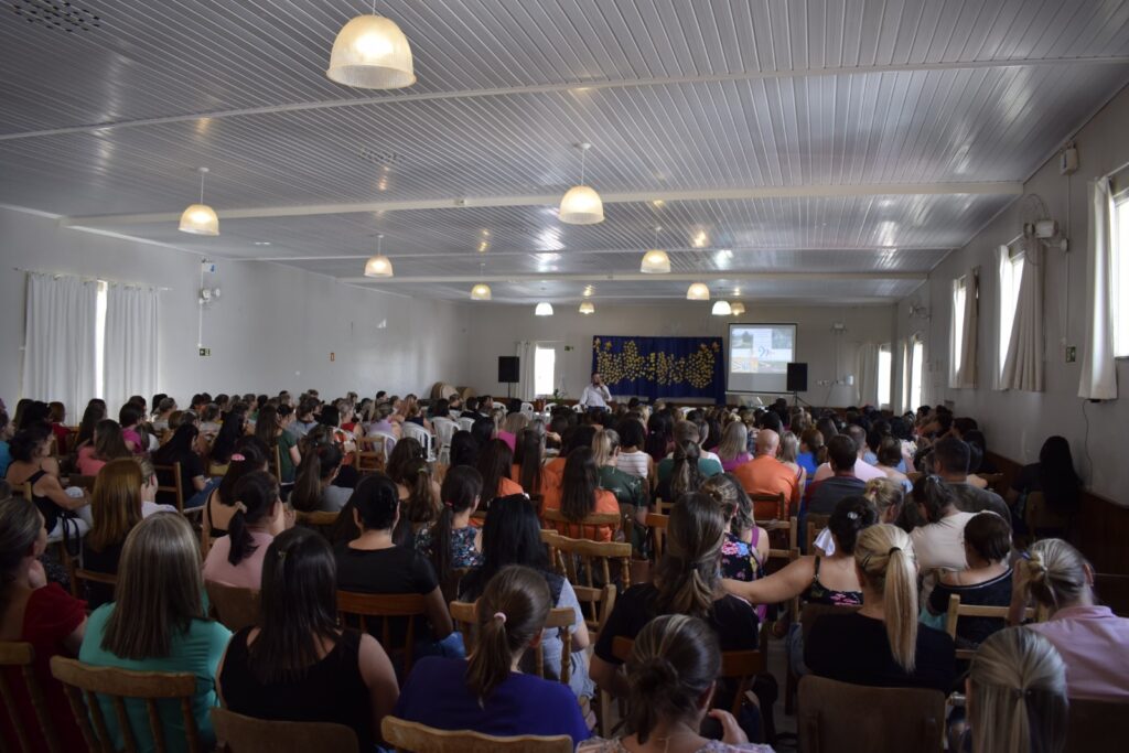 A programação da tarde iniciou com recepção ao som do professor de música do município de Sobradinho, Cristiano Mundt, seguido de pronunciamentos e palestra com Lui Nornemberg, com o tema: Pertencimento, desejo, papel social e o fazer pedagógico enquanto liberdade praticada para construção da coesão social: compromisso e afeto. A secretária de Educação, Cleura Minetto, ressaltou a importância do comprometimento de cada um no cotidiano escolar, bem como, a afetividade que é um dos fatores que favorecem a aprendizagem e desenvolvimento das crianças e estudantes.