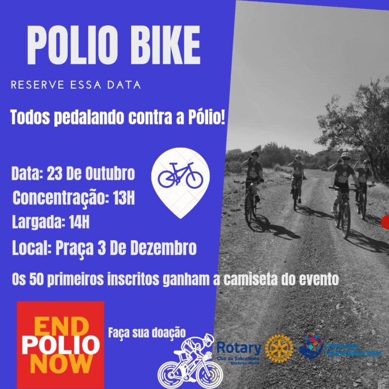 O Rotary Clube, em parceria com o Grupo Sobradinho no Pedal, promove neste sábado (23), o 1º Polio Bike. O evento tem o objetivo de arrecadar fundos e conscientizar sobre a importância da vacinação contra a poliomielite. Falando ao programa Enfoque da Rádio Sobradinho AM, a presidente do Rotary, Liselota Müller; Glória de Pellegrin, assistente do governador do Distrito; e Clair Werberich, do Sobradinho no Pedal, explicaram que são esperados cerca de 100 ciclistas do Centro Serra e de outros municípios como Santa Cruz do Sul.