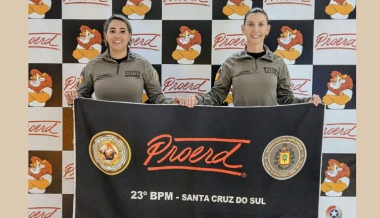 Policiais Militares do 23º Batalhão de Polícia Militar participaram do 24º Seminário Estadual do Programa Educacional de Resistência às Drogas e à Violência (PROERD), na cidade de Itajaí, em Santa Catarina. Representando o batalhão, estiveram presentes as instrutoras do PROERD, soldado Elisângela dos Santos Benvegnú, de Santa Cruz do Sul, e a soldado Denise Cassol, de Sobradinho.