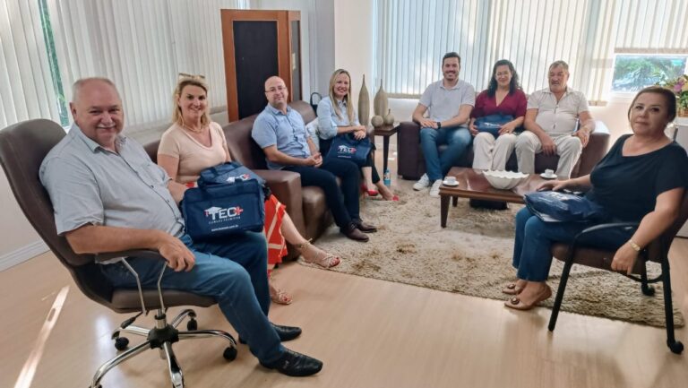 O prefeito Armando Mayerhofer recebeu, em seu gabinete no Centro Administrativo Municipal de Sobradinho, uma Comitiva da Tec+. Também participaram da reunião o vice-prefeito Ivan Trevisan, a secretária municipal de Educação, Cultura, Turismo e Desporto, Cleura Minetto, e a assessora jurídica da Prefeitura, Giovana Sarmiento de Oliveira.