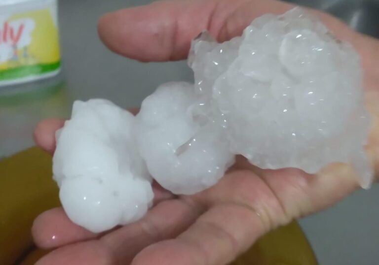 Ouvinte registrou o tamanho das pedras de gelo em Linha Tigre, interior de Arroio do Tigre.