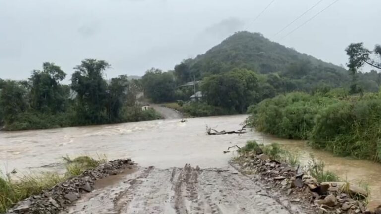 Pela manhã, o nível havia baixado e o trânsito estava liberado. Com os acumulados de chuva ao longo desta quarta-feira, 18, a ponte ficou novamente submersa.