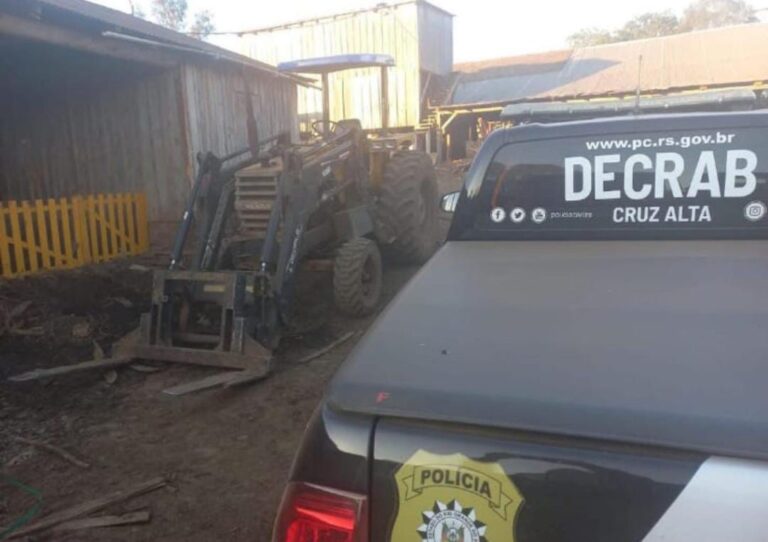 A Delegacia de Repressão aos Crimes Rurais e Abigeato (DECRAB) de Cruz Alta recuperou na última terça-feira, 29, um trator CBT 1090, equipado com kit acoplamento de 1.850 e concha, roubados em 2022. A vítima registrou ocorrência de estelionato em Não-Me-Toque, onde o trator havia sido descarregado. Após investigação, descobriu-se que a transação via PIX realizada em abril de 2022 foi cancelada.