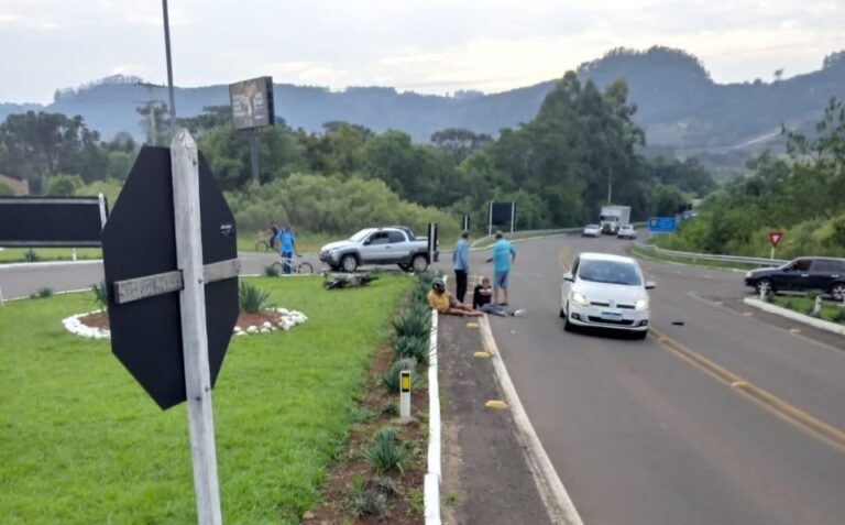 Já está se tornando comum. Mais um acidente foi registrado no Trevo da Fejão, na ERS-400, na manhã desta terça-feira (22). Dessa vez, a colisão envolveu uma Fiat Strada de Sobradinho e uma moto de Passa Sete. A caminhoneta seguia no sentido Sobradinho-Segredo, quando teria cortado a frente da moto que trafegava no sentido Passa Sete – Sobradinho. Pai e filho, de 47 e 18 anos, que estavam na moto sofreram várias escoriações. Os Bombeiros Voluntários foram acionados e conduziram as vítimas para atendimento no Hospital São João Evangelista, unidade de Sobradinho. O condutor da Fiat Strada, de 76 anos, não se feriu no acidente.