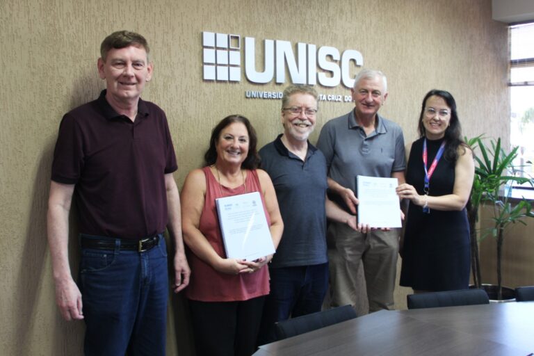 O coordenador do projeto, professor Rogério Leandro Lima da Silveira e um dos integrantes, professor Luiz Carlos Schneider, da Universidade de Santa Cruz do Sul (Unisc), apresentaram os resultados do trabalho para o presidente do Conselho Regional de Desenvolvimento do Vale do Rio Pardo (Corede/VRP), Heitor Álvaro Petry; a vice-presidente, professora Carmen Lúcia de Lima Helfer e a secretária executiva, Diana Filipina Anton.