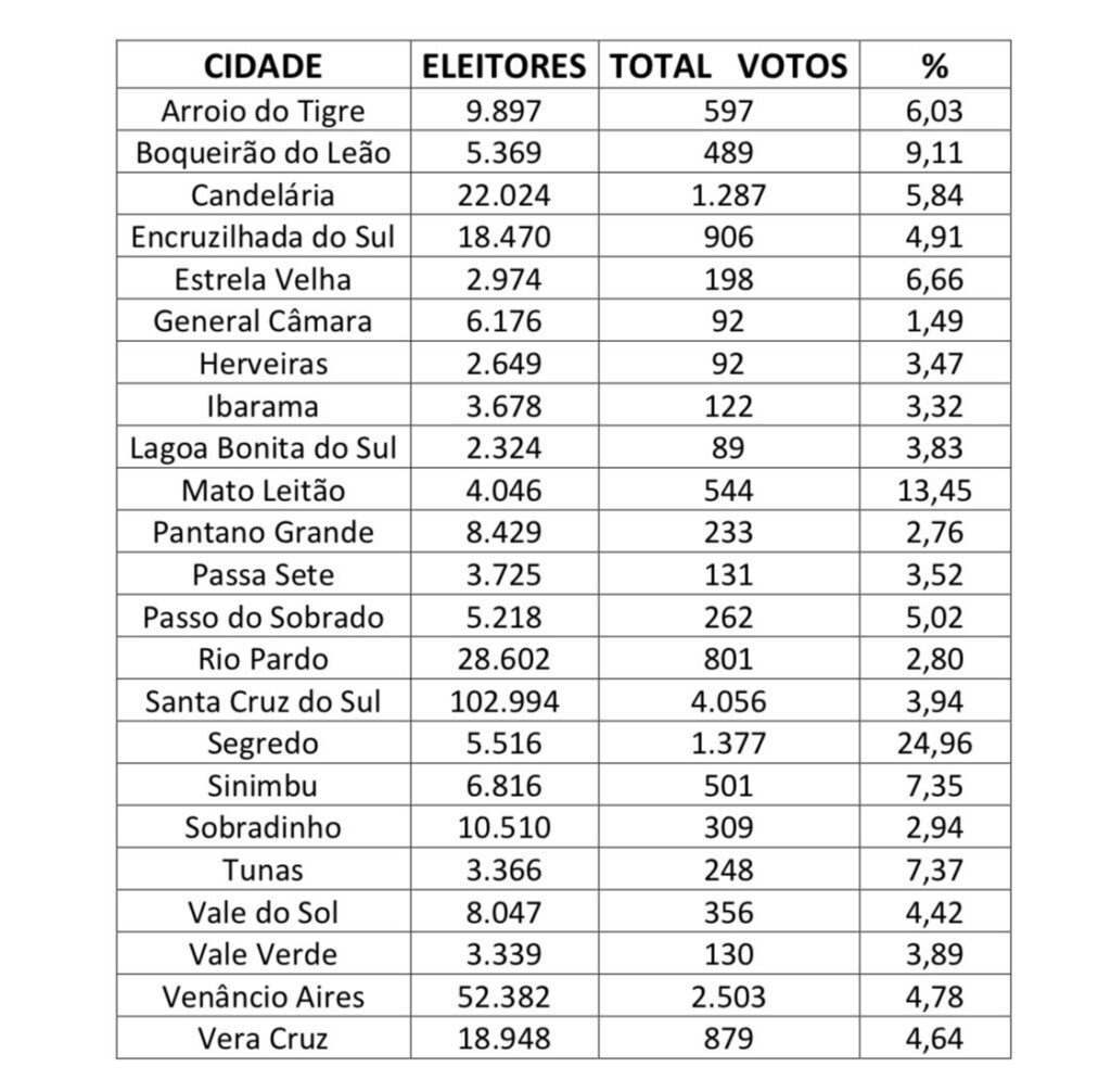 Em termos de Estado, a região ficou em terceiro lugar em números totais de votos, apenas atrás das regiões das Missões e do Médio Alto Uruguai, respectivamente com 36.822 e 31.969 votos. A homologação final da votação deve ser realizada no dia 17, pelo Governo do Estado.