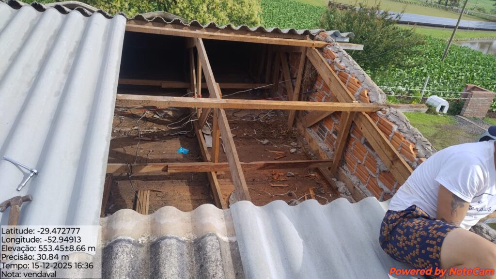 Pelo menos seis residências foram destelhadas em Passa Sete em decorrência do vendaval registrado na tarde de segunda-feira (15). A informação foi confirmada pela coordenadora municipal da Defesa Civil, Lúcia Moura, em entrevista ao Programa Enfoque.