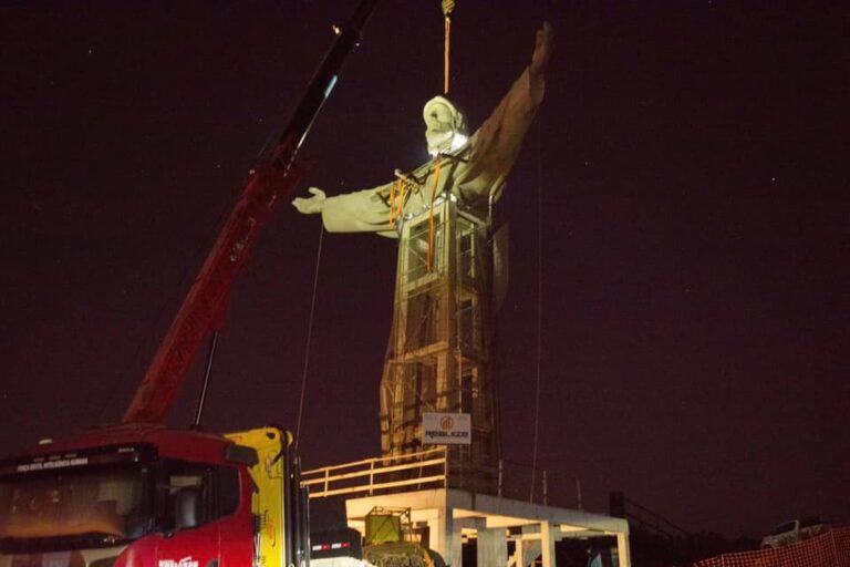 A montagem das peças que formam a imagem do Cristo Acolhedor terminou no início da noite desta quarta-feira, 10. A última parte erguida pelo guindaste foi a cabeça da escultura. A movimentação foi grande ao longo de todo o dia no entorno da área onde a estátua de 24 metros está sendo construída. Além dos operários da construtora e demais responsáveis pela obra, muitas pessoas de Sobradinho e cidades vizinhas visitaram o local e divulgaram fotos e vídeos nas redes sociais. Embora a obra não esteja pronta, a imagem já pode vista do centro da cidade.